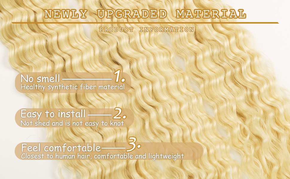 613 Blonde Ocean Wave Synthetic Soft Curly Crochet Hair Extensions 6 Packs 22inch Deep Wave Crochet Hair Extensions For Women 613 Bleach Blonde